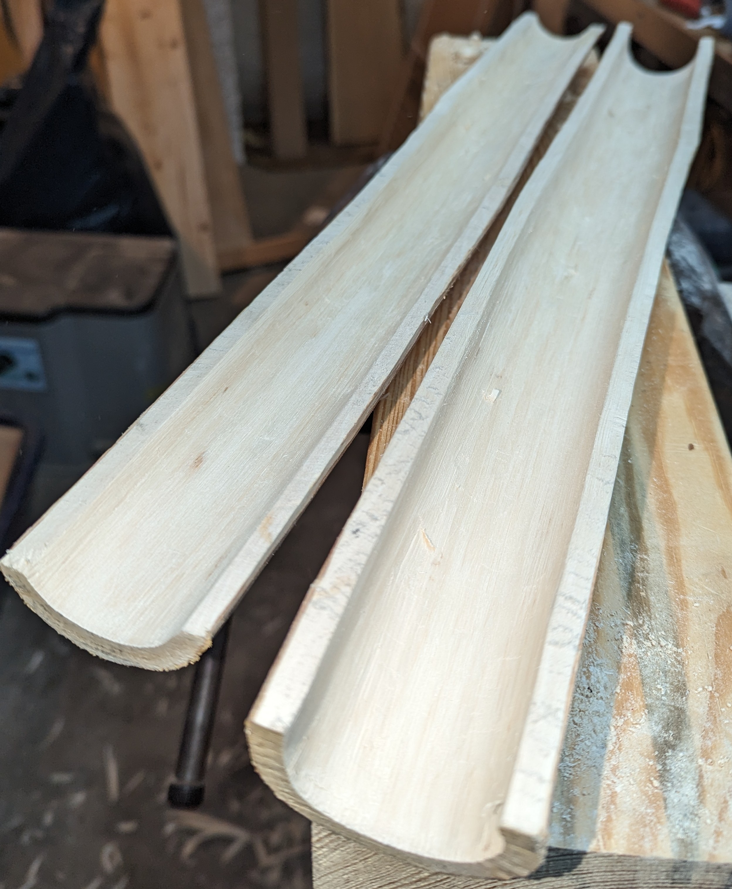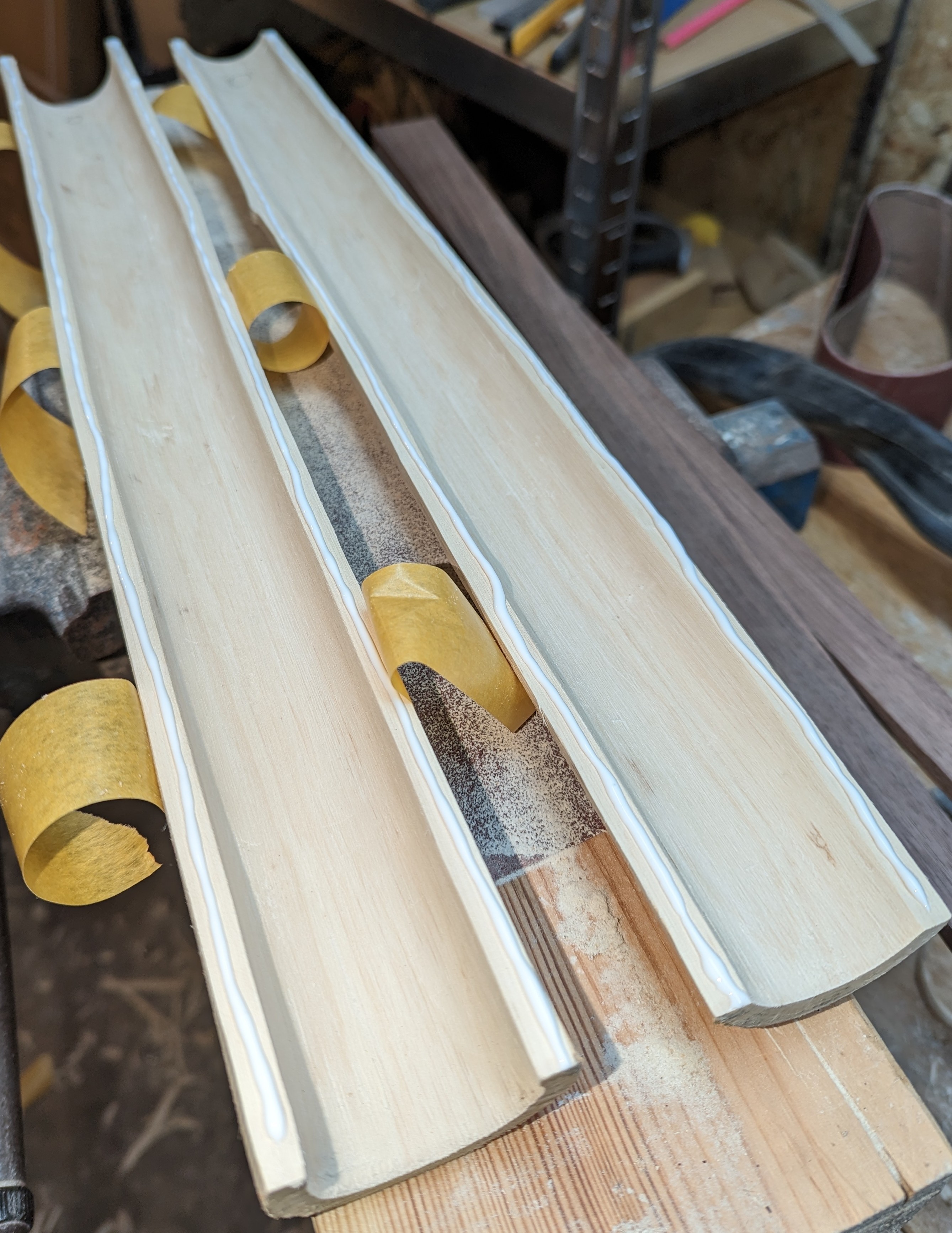 Die Klebeflächen hab ich mit der Ziehklinge noch etwas geglättet und dann Holzleim aufgebracht.