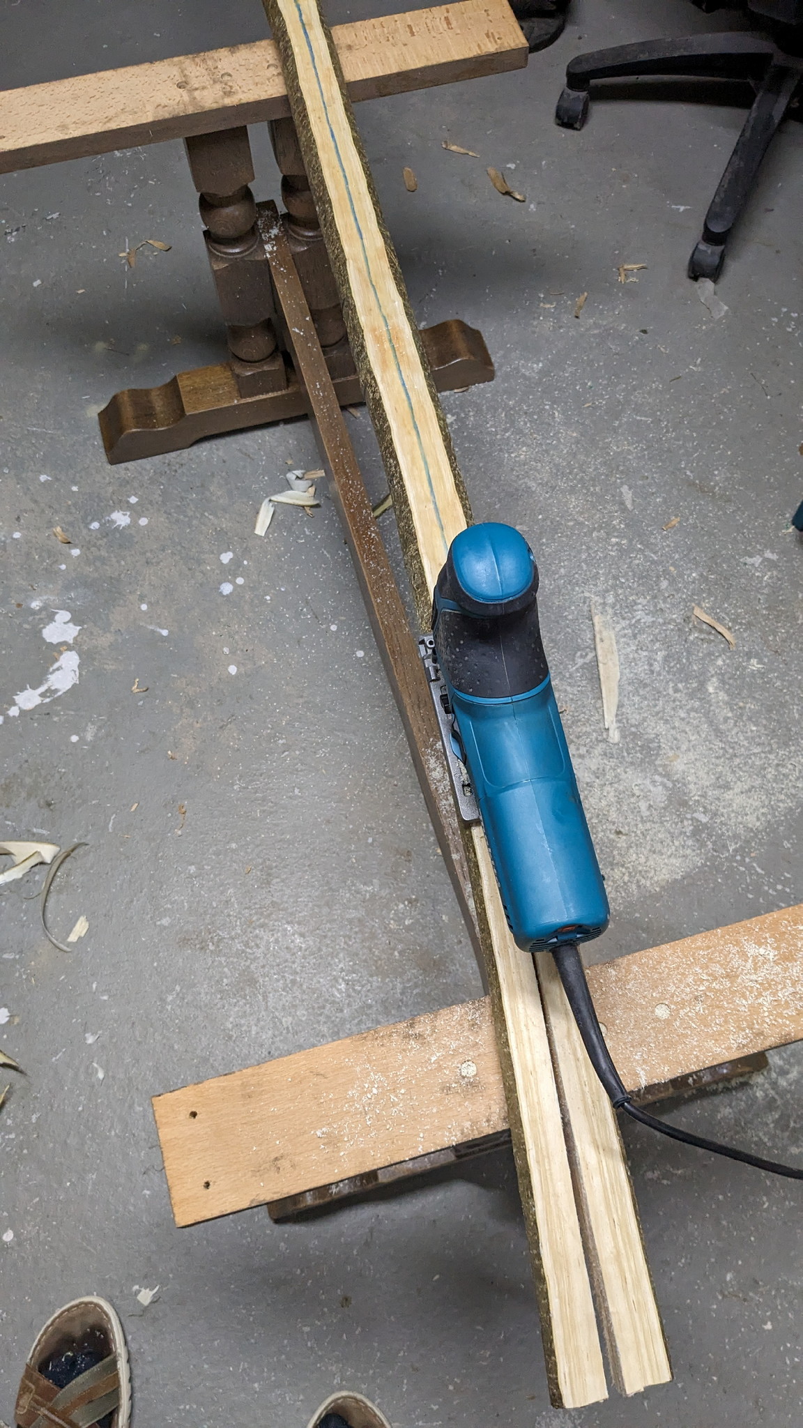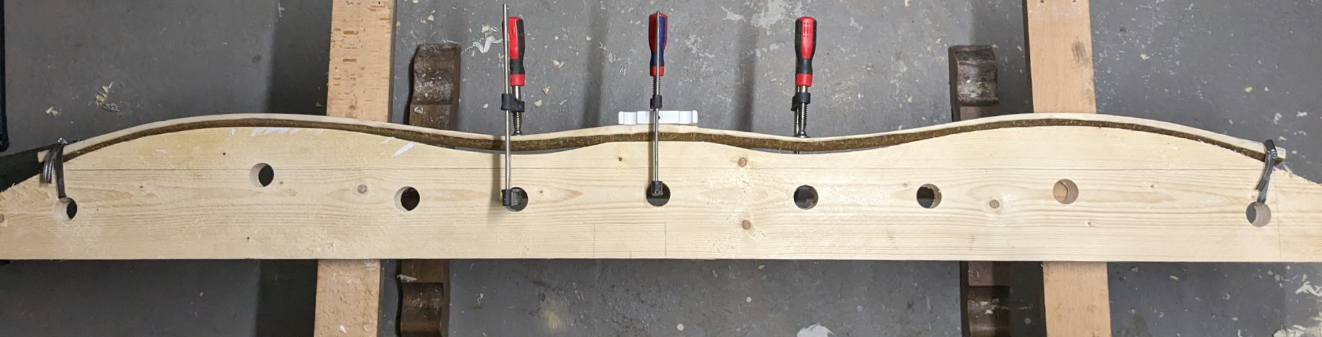 Stave wurde etwas in der Dicke reduziert und die Form vorbereitet (Löcher für die Zwingen fehlen noch). Mal schauen ob ich heute noch biege oder morgen...