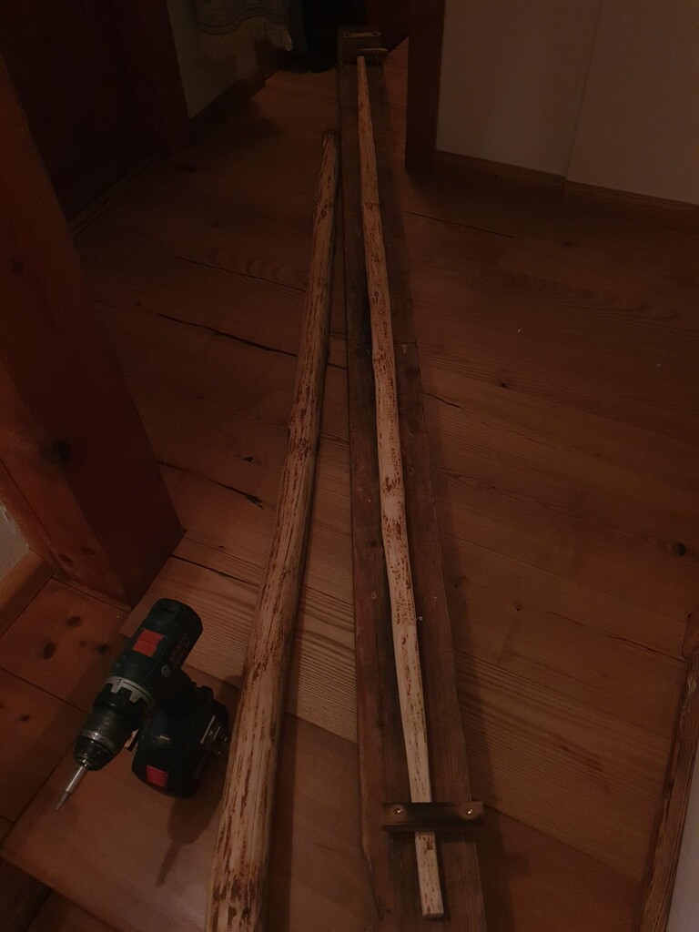 Seit gestern -10g/24h. Besser, aber noch nicht gut. Heut die Duebel abgesaegt und mit dem Hobel geplant und noch zwei