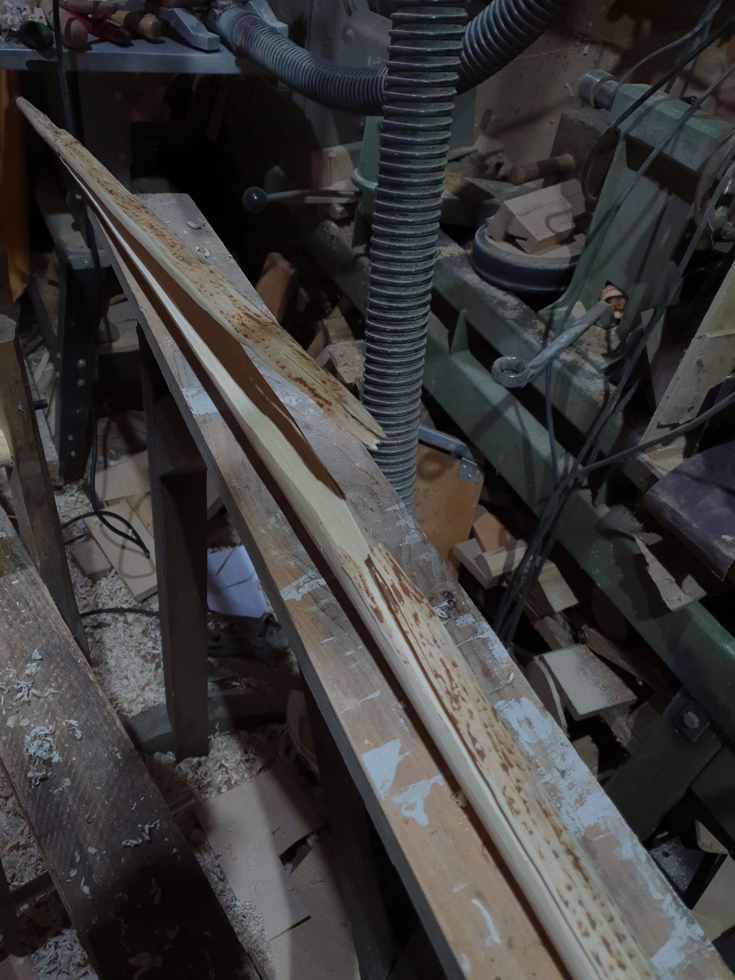Hartriegel 2 steht wieder in der Werkstatt. Ich glaub, den hab ich gehimmelt. Schad um das schoene Stueck Holz