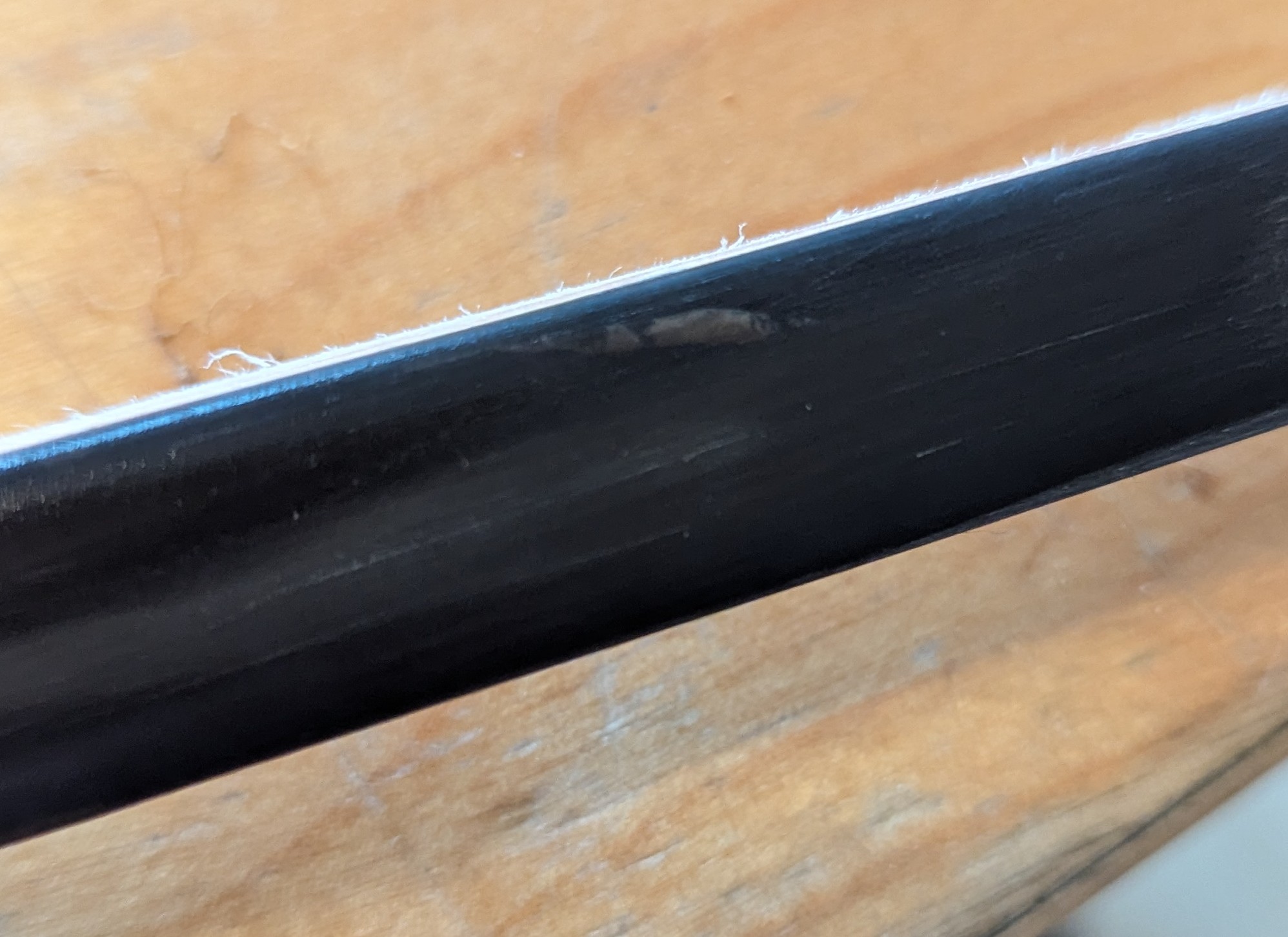 Die Stelle ist Recht klein und habe die leider nicht schärfer bekommen. Aber du hast Recht , an der Stelle delaminiert das Horn etwas. Ich hatte Angst das es sich bei Belastung weiter ausbreitet.