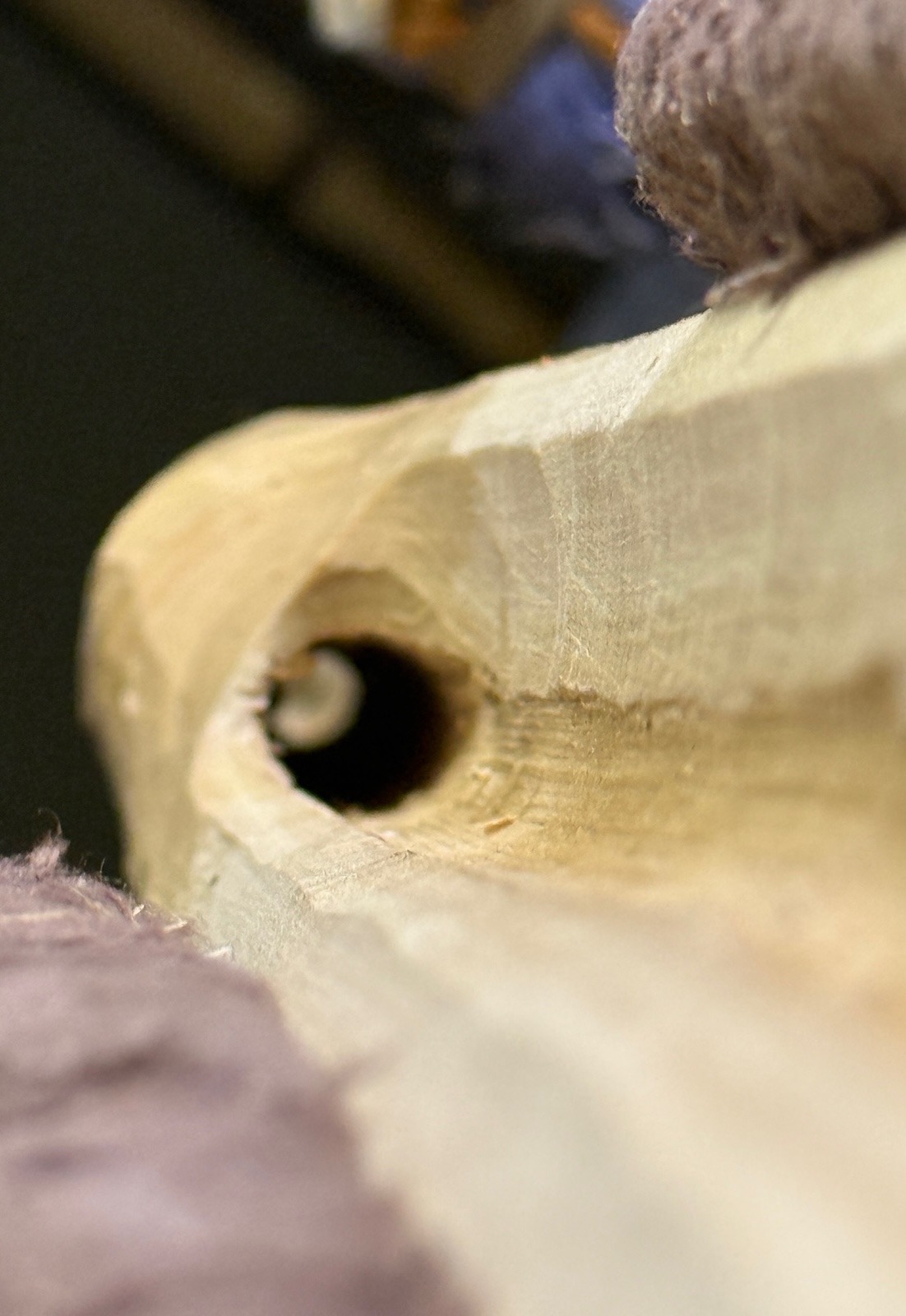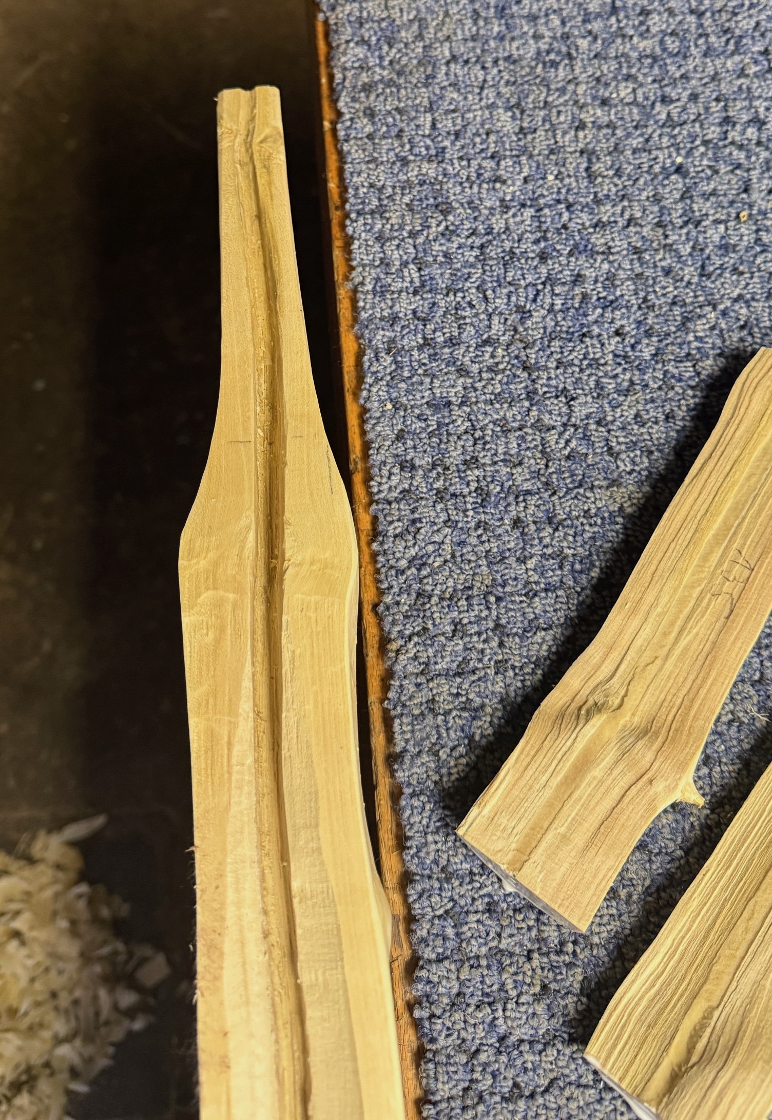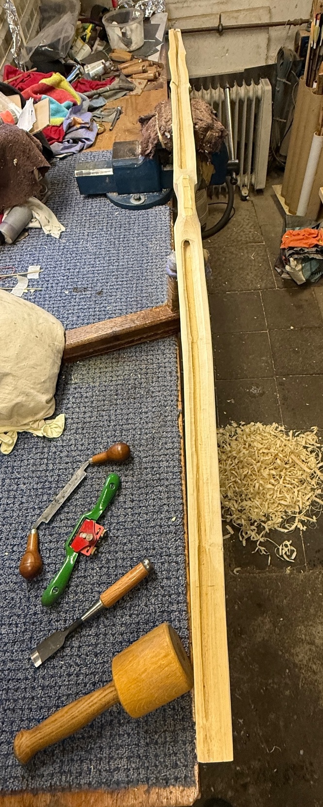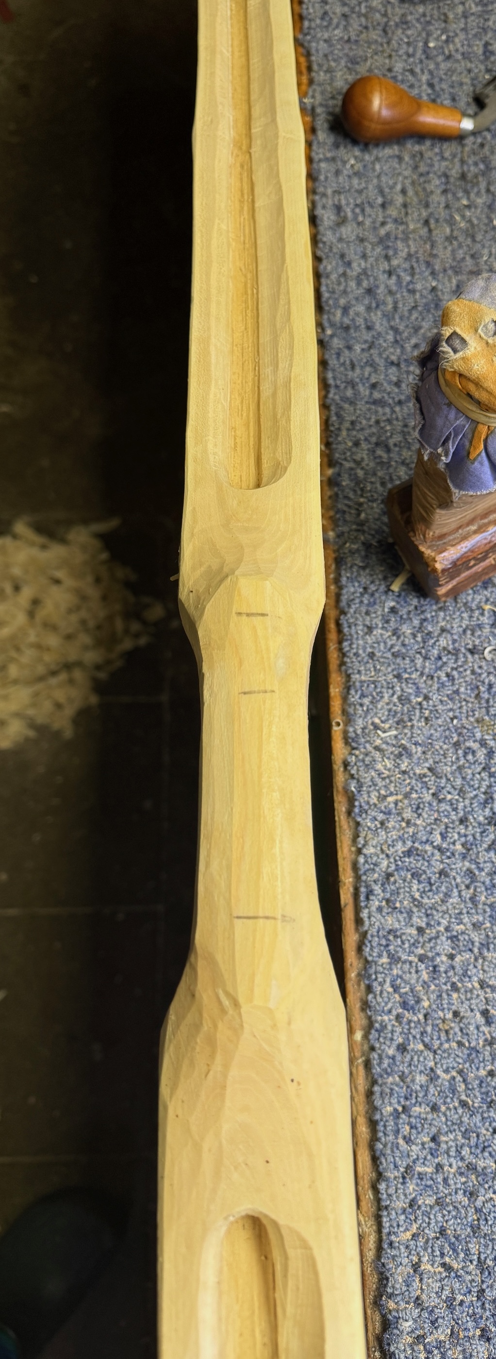 Ausserdem habe ich den Markkanal mit dem Rundeisen erweitert. Der Sapling hat einen so hohen Rücken, da werden mir die Wurfarme sonst zu schmal. Ich werde also Richtung HLD gehen. Ein HLD-Mölle also. Mal schauen. 1532g.