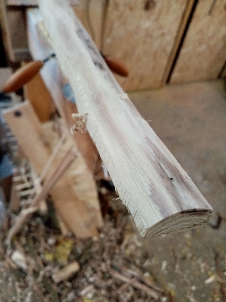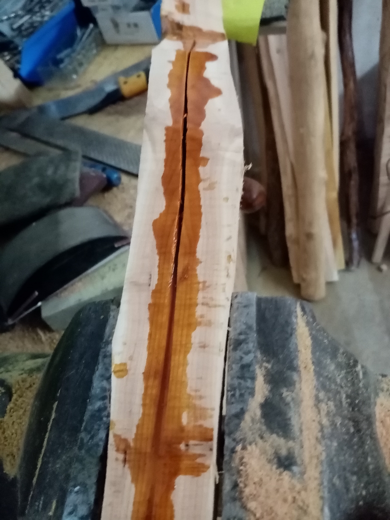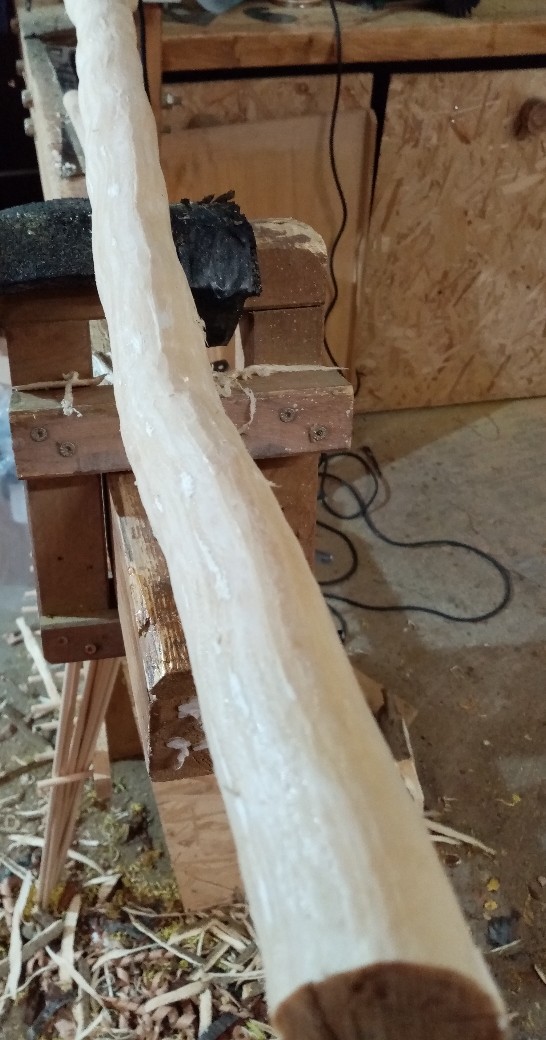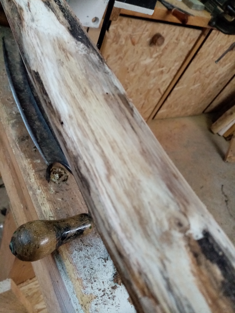 So als Update, der Stave hat knapp 200 Gramm verloren und dreht sich.... auch Spannungsrisse bleiben nicht aus, deshalb ein Entlastungsschnitt am Griff vom Mark zu Mark gemacht und erneut versiegelt, diesmal mit dünnem Schellack.. Wird schon werden, ich habe mir heute noch ne Alternative aus dem Habitat gezogen :-) auch ganz lustig..