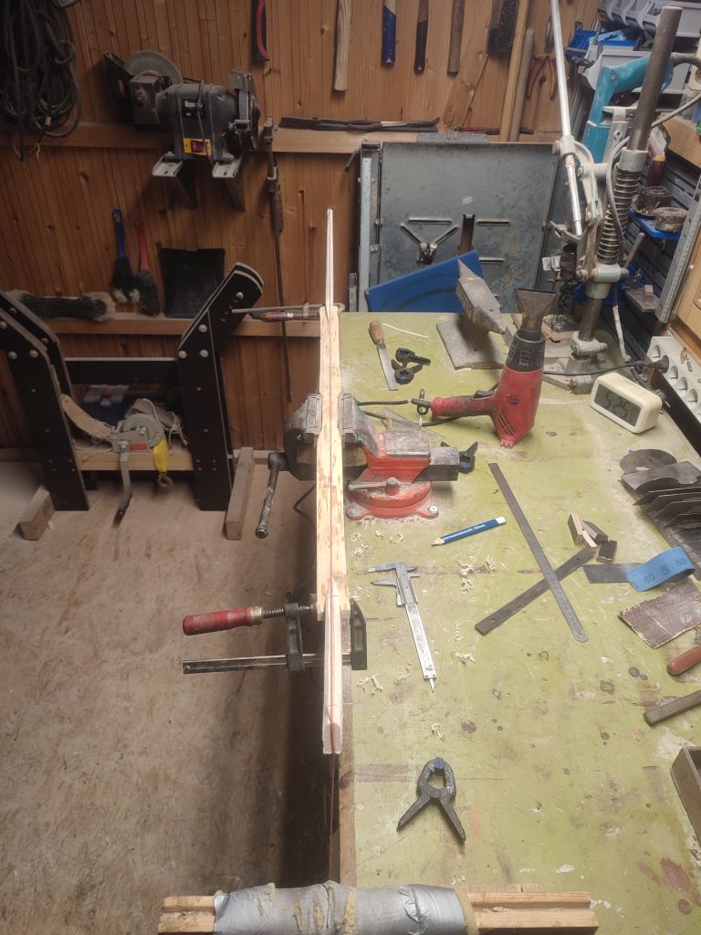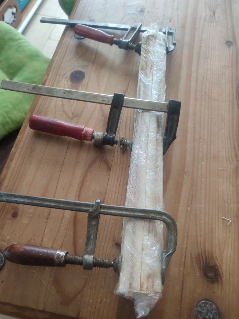 Ich denke Anfang nächster Woche kann der Bogen getillert werden und sobald er kein Gewicht mehr verliert, dann kommt das Horn drauf.
