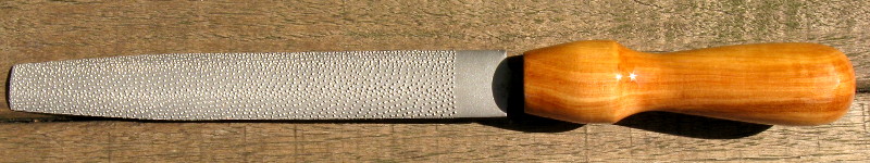 Auch Opas alte "handgehauenen" Raspeln gehören auf den Müll oder in die Esse fürs Messermachen. Denn sie sind meist zu grob behauen und es kommt auf den Hieb an wie gut oder schlecht eine Raspel für dies oder jenes zu gebrauchen ist. Also, DICK, Hieb 3 und halbrund. Damit kann man einen Bogen vom Anfang bis Ende bauen ( fast bis aufs finish ).