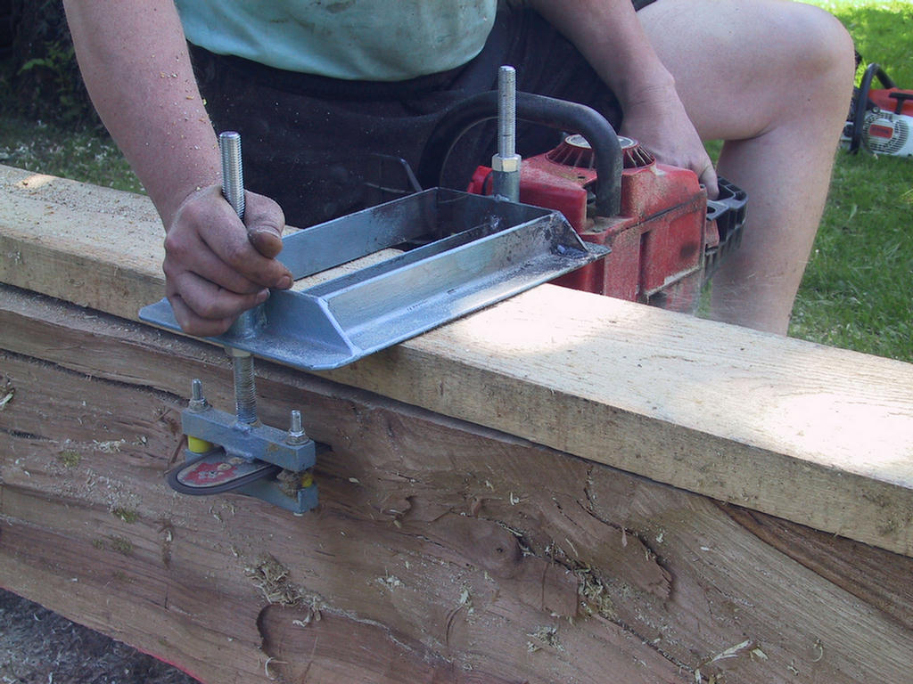 Zu diesem Zweck habe ich meine ältere Kettensäge ein wenig aufgemotzt und ihr einen einstellbaren Abstandhalter verpaßt.