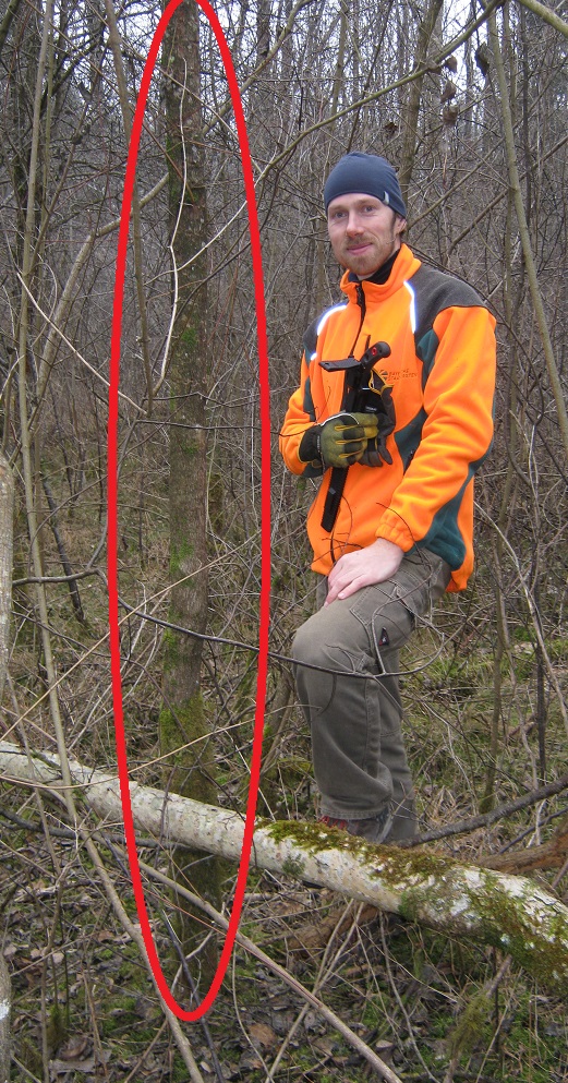 Habe heute wieder Buche mit dem Reißhaken markiert. Damit zieht man einen Streifen Rinde vom Baum um ihn kenntlich zu machen.