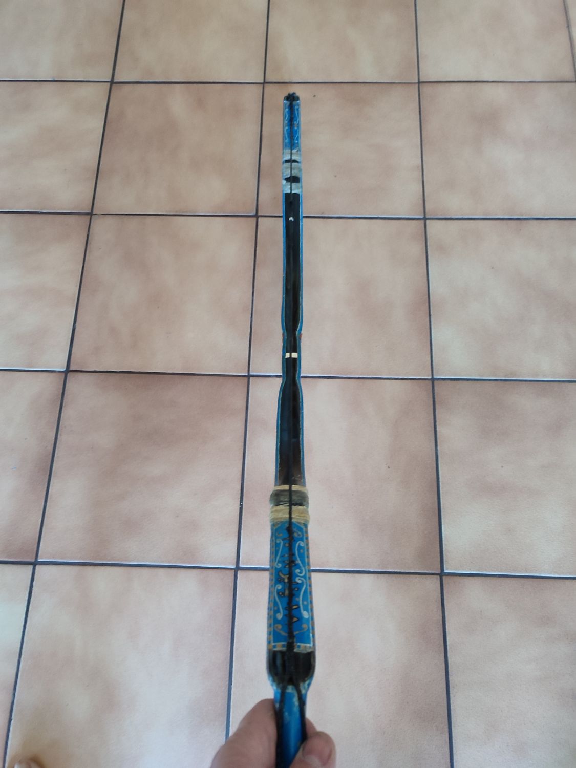 Vorsichtig formuliert würde ich sagen, dass eine elastische circuläre Sehnenwicklung und Sehne über ein Leder gewickelt keine zusätzliche Sicherung der Epoxyklebefuge darstellt.