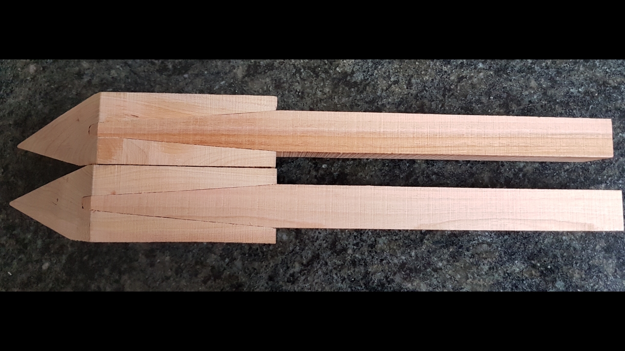 So lange sind die Streifen jetzt noch (die Rohlänge lag bei 78 cm). Einer der beiden ist allerdings auf der dünnen Seite etwas mager, ich kann aber noch 1-2 cm abschneiden. Außerdem endet das Horn in etwa in Kniemitte und da biegt sich eh nix, insofern passt das. In der Bogenmitte werde ich ca. 10 cm Horn einfügen müssen, was aber bei diesem Bogentyp nicht unüblich ist.