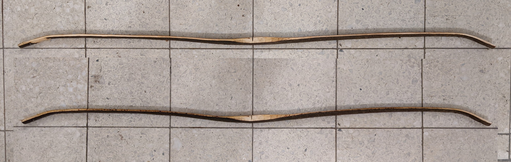 Wie erwartet ist der obere Wurfarm viel zu stark, wegen dem großen Reflex. Später mal neue Nocken schnitzen, den oberen ordentlich schwächen und dann ab auf Standhöhe, bin schon gespannt