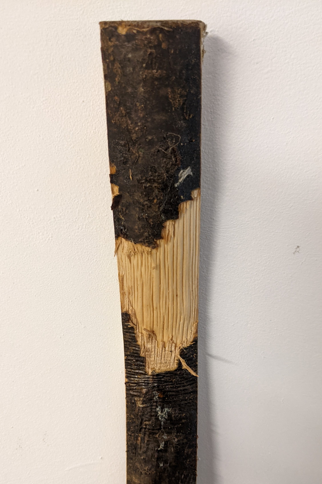 Wenn ich jetzt aber noch die Bleistift und Werkzeug Spuren weg schleife und die Rinde (die leider über dem Grill in Kombination mit dem Leinöl richtig elastisch geworden ist und kein bisschen einreißt, was mir das Entfernen erleichtert hätte...) runter mache, bin ich bei unter 30#.