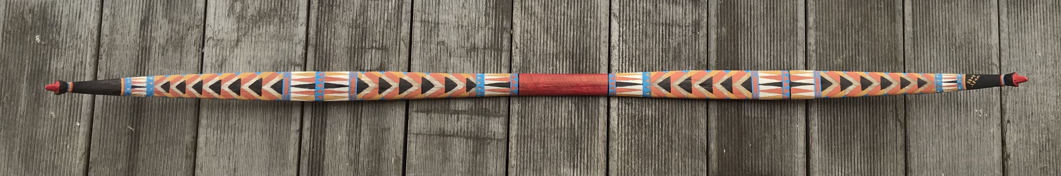 Der Paddelbogen ist jetzt auch getillert. Gestern habe ich ihn noch bemalt und jetzt muss er noch ein bisschen trocknen.