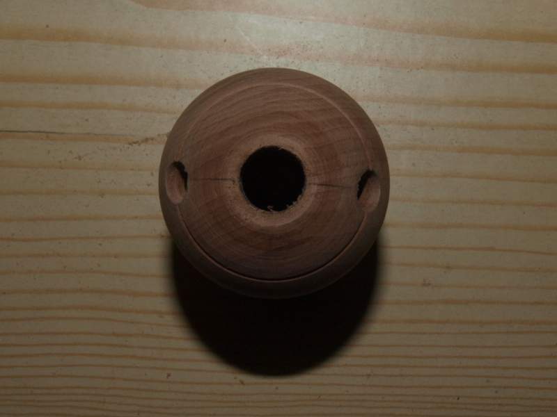 Als Material hab ich ein Holzei aus Buche genommen. Dieses hab ich ausgehöhlt und oben und unten mit bohrungen versehn.