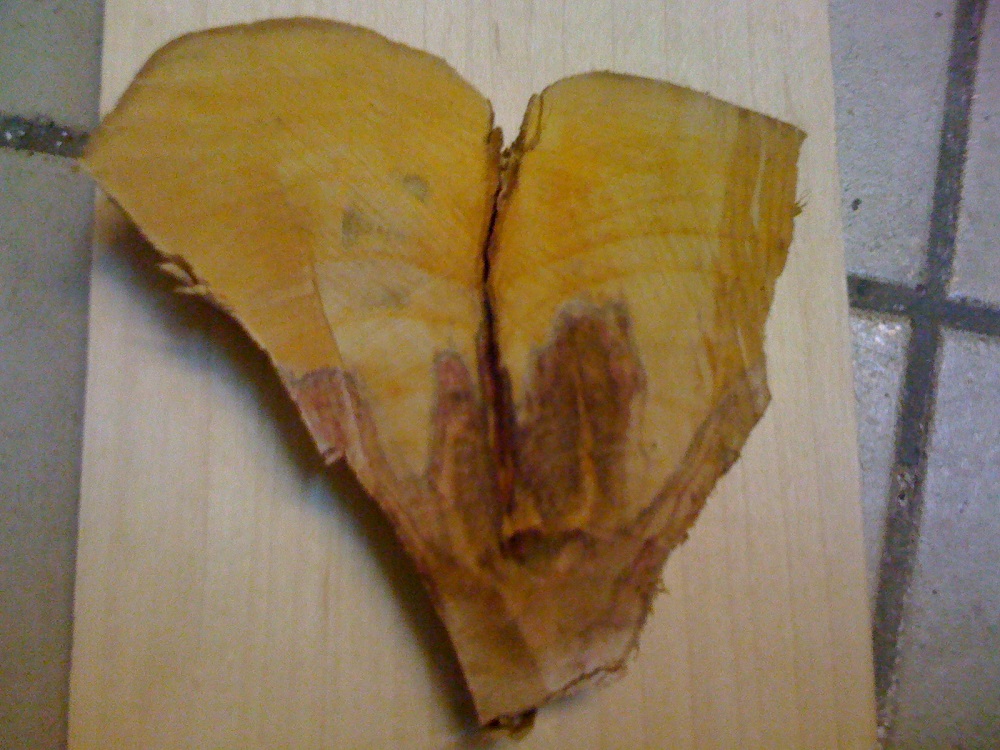 Rabe du hast recht. Er hatte mir nur eine Frucht gezeigt, die sah wie eine Kirsche aus und er hat auch gesagt, dass es eine Zierkirsche ist. Aber es ist trotzdem ein schönes Holz. Ich habe gestern mal ein Stück glatt geschliffen und im Heizungsraum mal ein bisschen getrocknet.