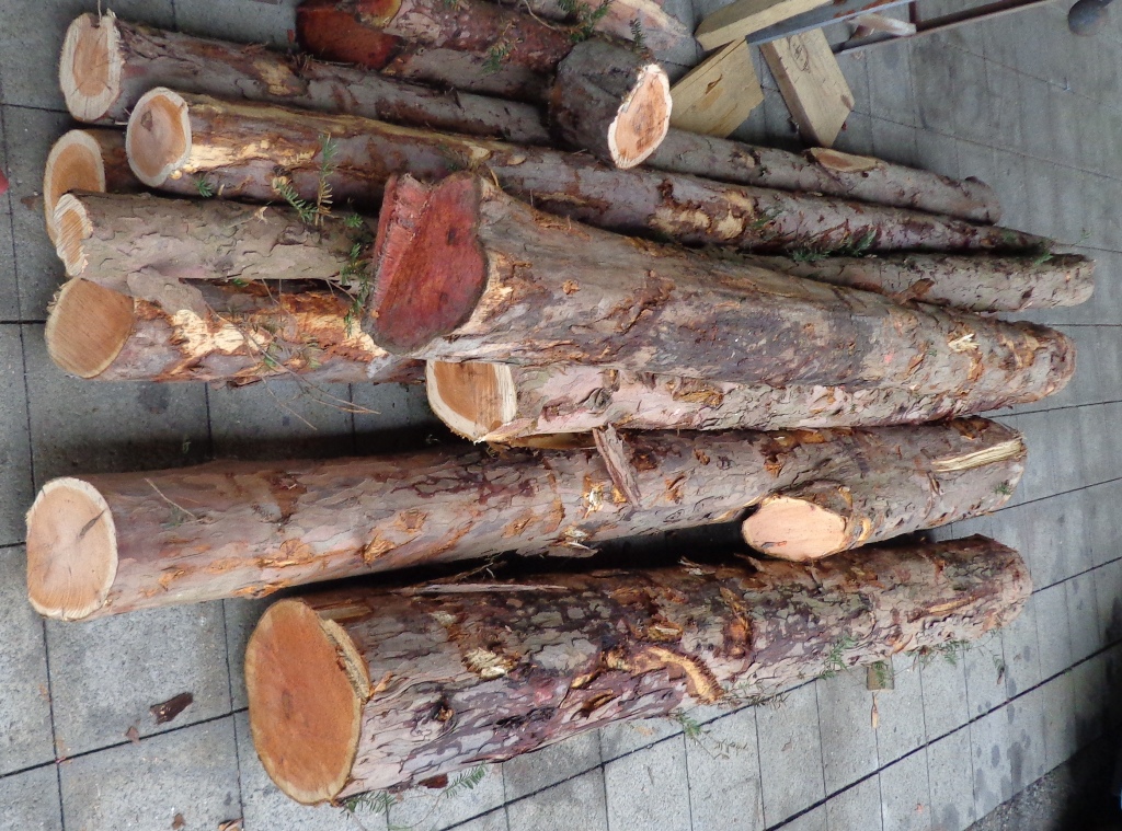 und einer mit 157cm Länge, unten 12 oben 11cm Durchmesser (Rinde auch schon runter)