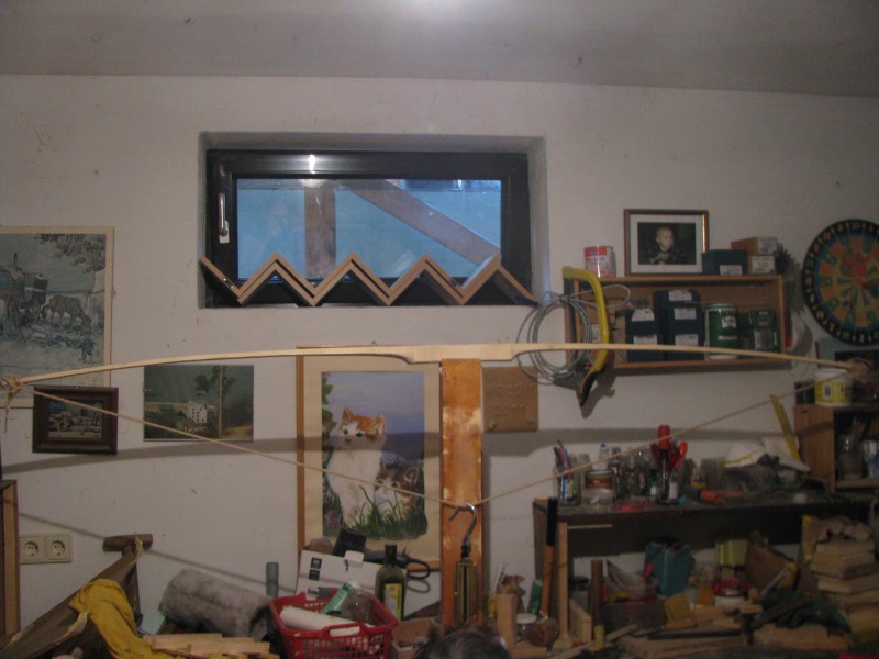 Auf den Bildern sieht man wie ich mich bemühe wieder mit suboptimalen Werkzeug die momentane Bogenstärke