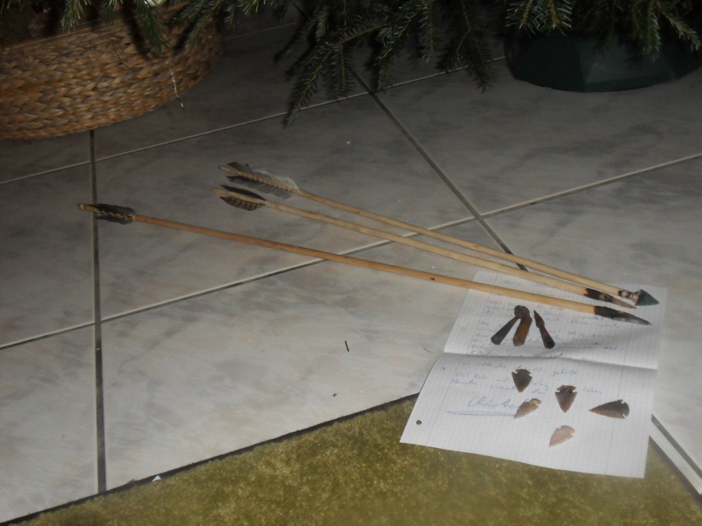 Als da wären : 4 Geweihspitzen vom Weißwedelhirsch , 6 Schwingen vom wilden Truthan , eine Tüte kl Federn und zwei Flintspitzen :)