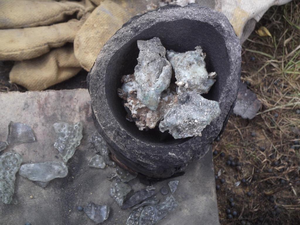 Es wurden led. ein paar Kilo Lehm, etwa um die 30 kg. Holzkohle, der Tiegel von shokunin sowie