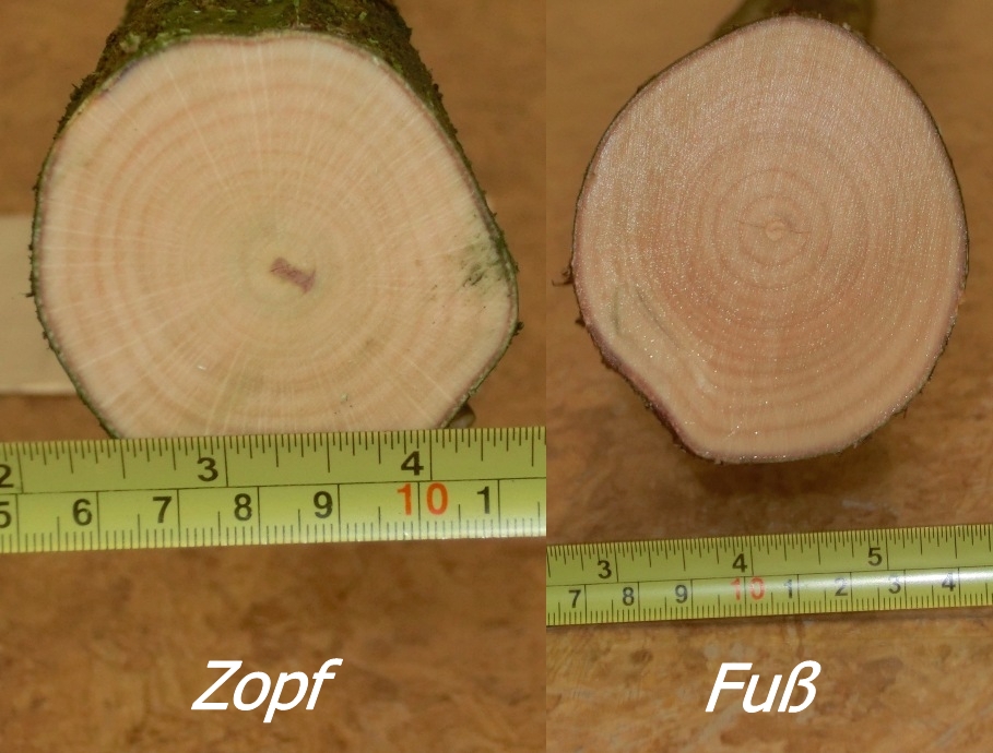 Schwierigste Stelle: Ein Ästchen von 8mm Durchmesser auf der deflexen Seite 13cm vor dem Zopfende, einen Anhalt für Drehwuchs konnte ich nirgends entdecken, wenn dann kann es den nur am Fußende geben. Die Frage lieber Rabe lautet, wie soll ich weiter Vorgehen, Du baust und bestimmst, ich Handlangere nur?