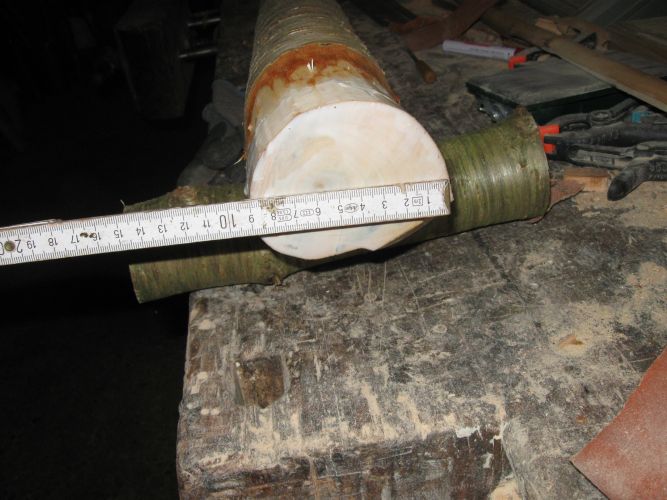 Dafür werde ich diesen Stave auf voller Länge lassen, ihn nur entrinden und die Enden versiegeln, darfst den Bogen im Stämmchen selbst finden.