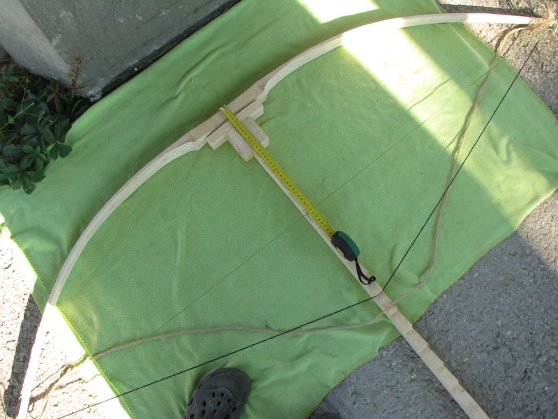 Jedenfalls schafft der Bogen 64cm Auszug mit einer Sehne auf normaler Standhöhe. Nun die Standhöhe war