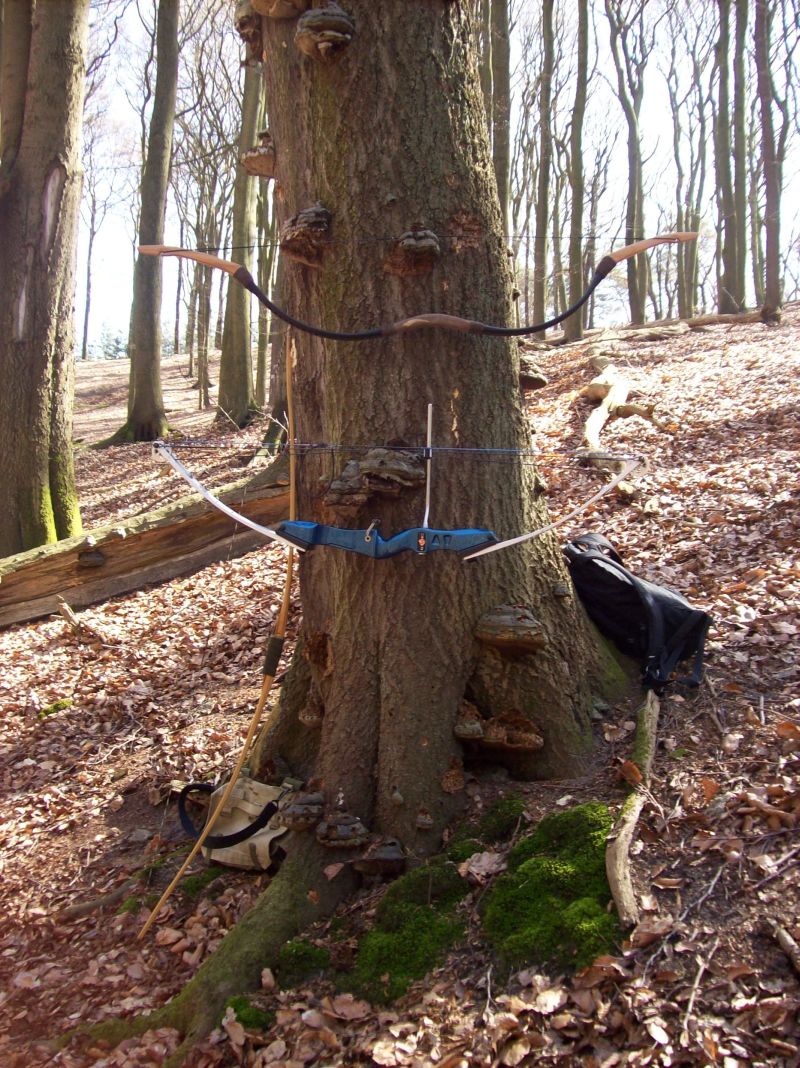 Reichlich Hasel in den Wagen geladen, Getränke eingepackt, zwei 35# Bögen eingepackt aber nur einen Satz Pfeile!