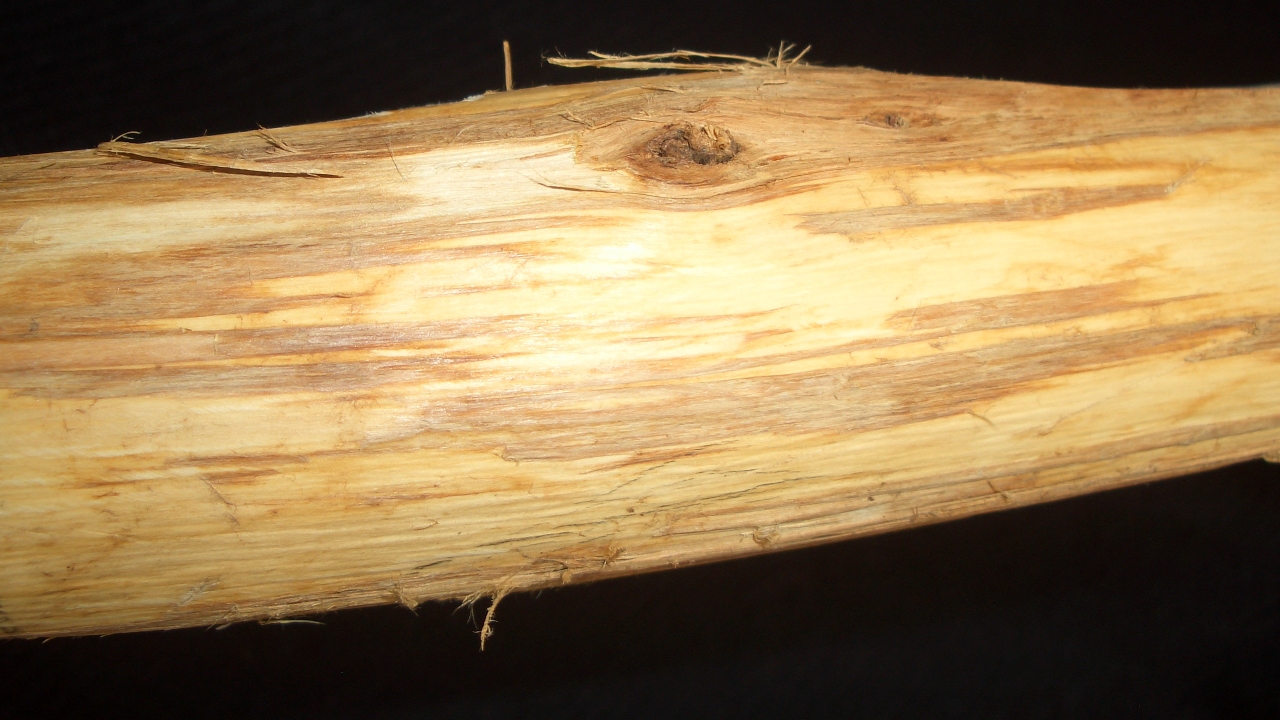 Eine hässliche Stelle mit ein bischen Fäulnis im ersten Wurfarmdrittel hat er noch, aber ich hoffe, dass die rausfällt: