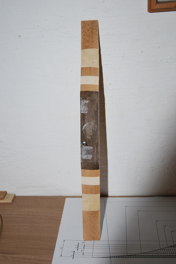Die Enden sind gute 7mm dick und ich werde ggf. auf die Glaskeile verzichten, da ich so a)die Kerne platt mit Holzleim verkleben kann, b) bei Bedarf guten Gewissens noch etwas kürzen kann, c) das Glasplattschleifen vermeide und d) sowieso Overlays draufpichen möchte.