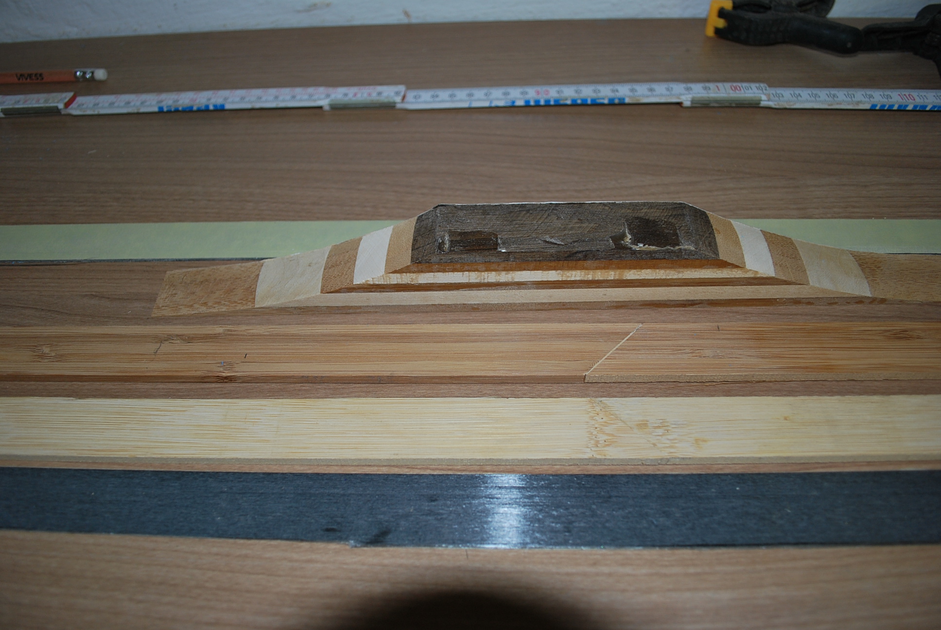 Ja das Aussägen/Schleifen des Umrisses macht mir auch schon etwas Kopfzerbrechen. Viel Tillern werde ich hoffentlich nicht müssen, werde den Seitentaper soweit möglich von Bögen vergleichbarer Abmessungen ableiten. Das was dann bleibt +Laminatstärkenunterschiede werden von Hand über die Seite erledigt. Hier dürfte er bei der Breite extrem schnell reagieren, ich hoffe sehr, dass ich nicht trapen muss...
