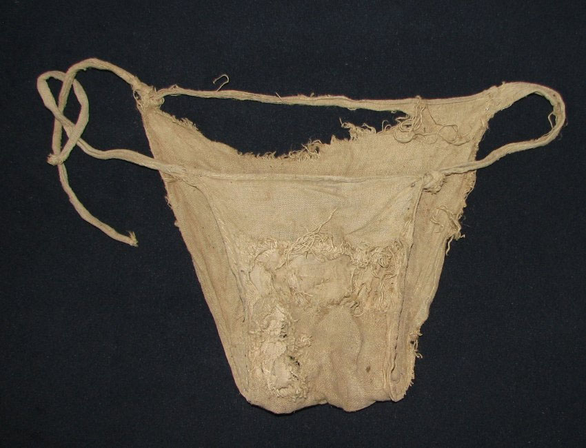 Der BH-Fund ist wirklich sehr genial, soweit ich die Texte verstanden habe ist man sich aber ziemlich sicher, dass die Unterhose so von Herren, nicht von Damen getragen wurde. Eine tangaähnliche Form kenn ich aber auch von mindestens einem Frühmi, der für die Form wohl auch Belege hat.