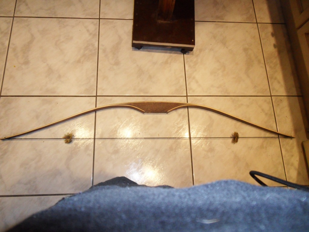 Uns hat kurz der Anblick irritiert, weil die Tillerform doch anders aussieht wie bei unserem ersten, der ja kein Deflex-Reflex war. Wurfarme sind ja schon rausgeschliffen. Allerdings sind die Tips auch noch ziemlich breit, die Wurfarme sind definitiv noch nicht endgültig. Aber lieber erst zu wenig als zu viel weg :)