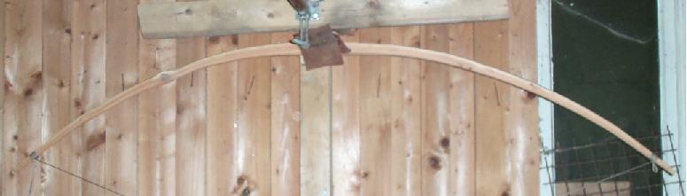 So, ist zwar kein Flitzebagen, nur ein asymmetrischer Langbogen, unten die Sehne in einer Kerbe am Bogenbauch fixiert und dann Schweinerückenknoten 4x, oben einseitige Sehnenkerbe seitlich und am Bogenbauch mit zu ziehender Schlinge, aber