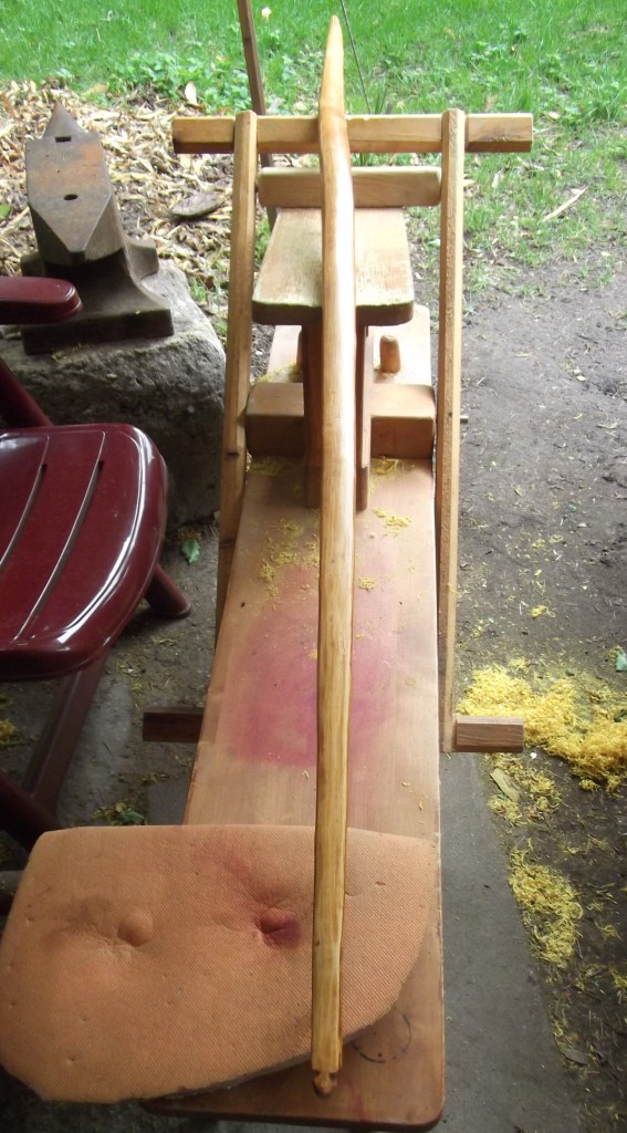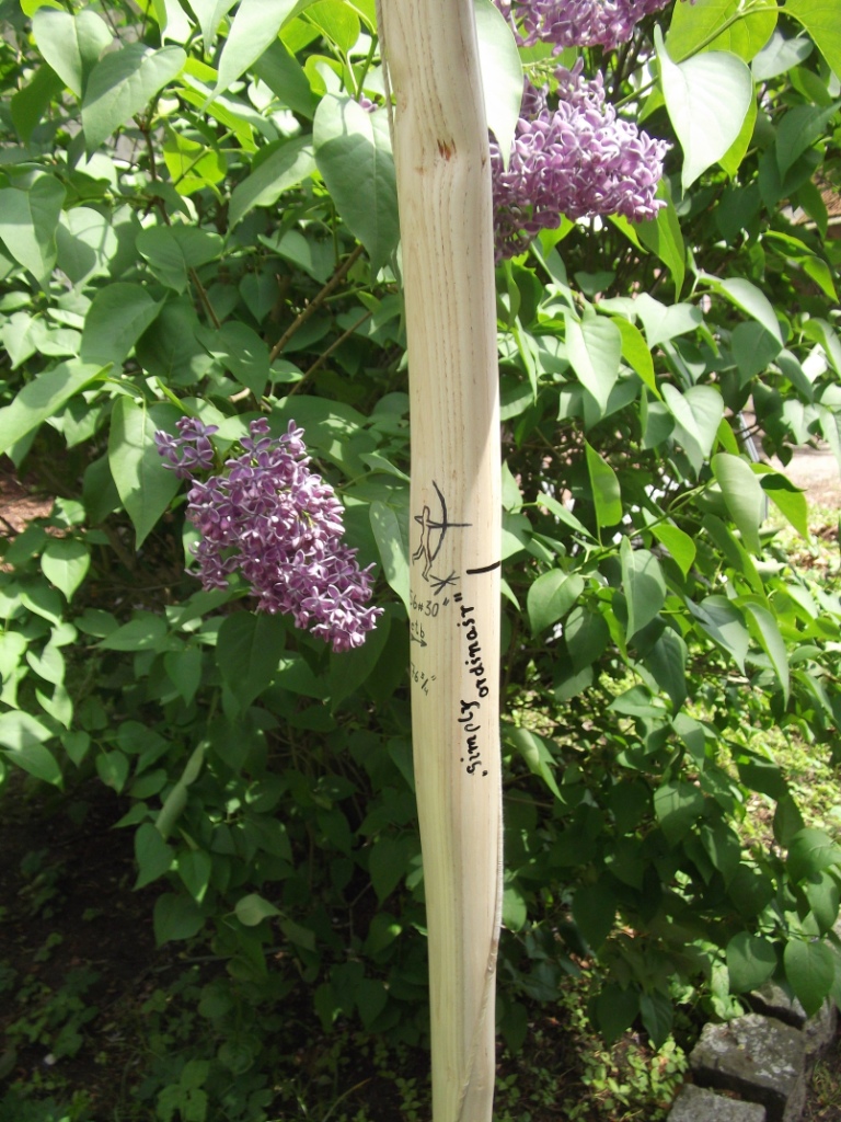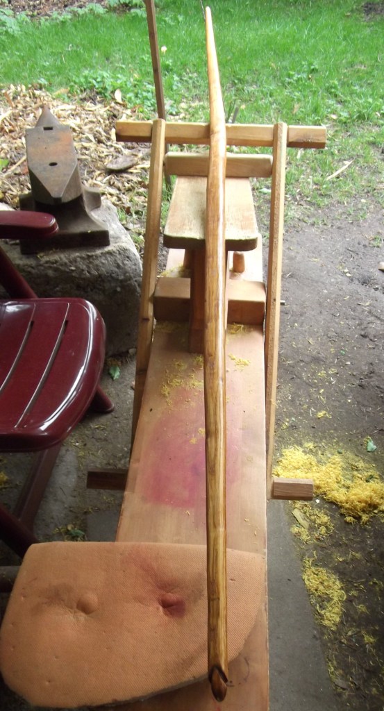 So, kurz ( ;) :D ) und knapp, Esche-Rohling, Anfang des Jahres schon mal auf dem NdBBT vorbearbeitet, l.ü.a. 2,05m mit rudimentären Tipps und rotbrauner Wachslasur versiegelt und gestern wieder rausgekramt...