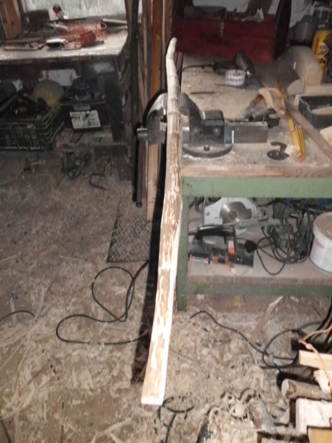 Bogen wurde zunächst auf 168cm gekürzt, dann der Rücken gesäubert mit der Ziehklinge und die Kanten mit dem Ziehmesser gezogen.