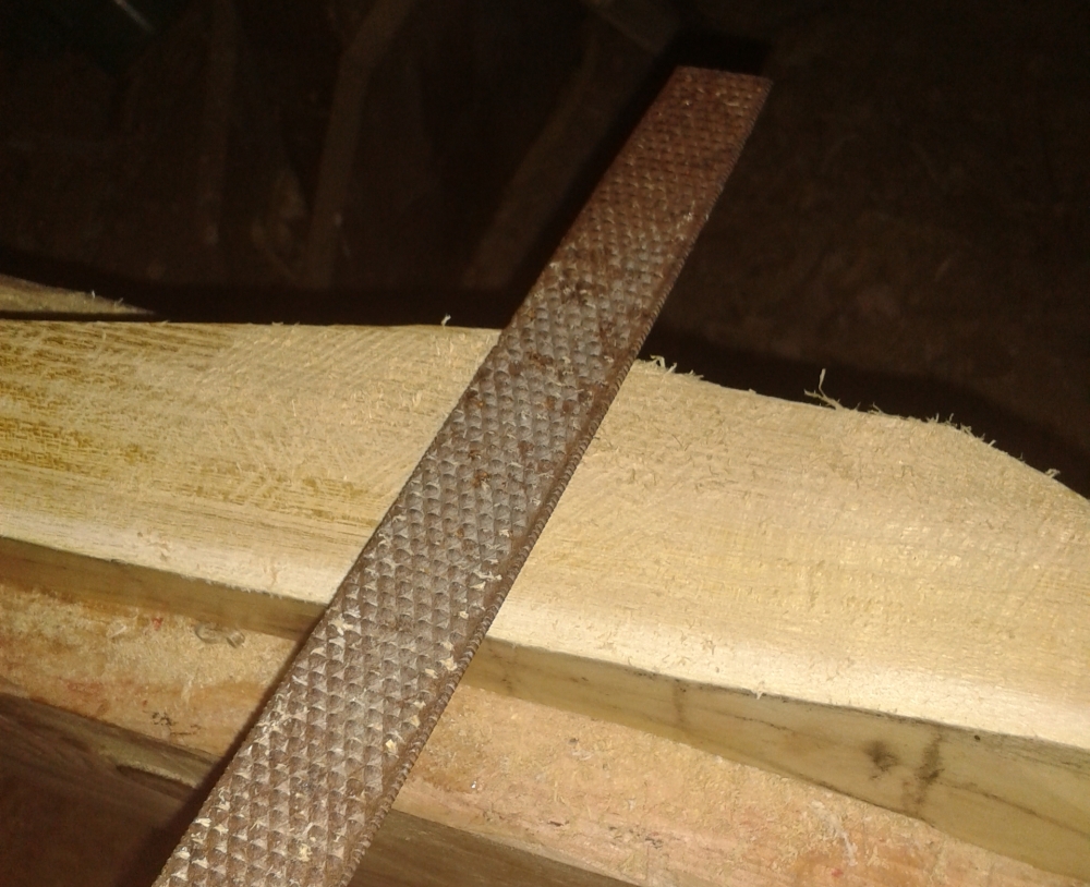 Bei starken Wellen im Holz, wo man mit Hobel und Messer nicht mehr weiterkommt, nehme ich lieber die alte Raspel von meinen Opa: