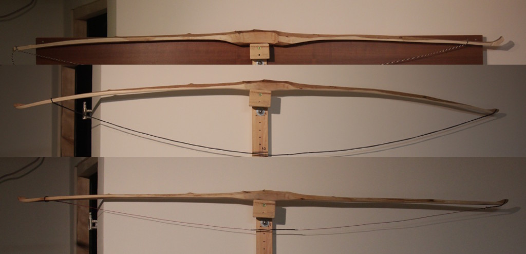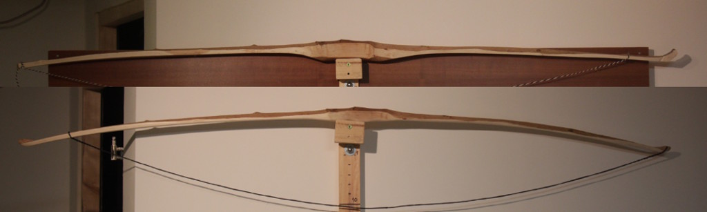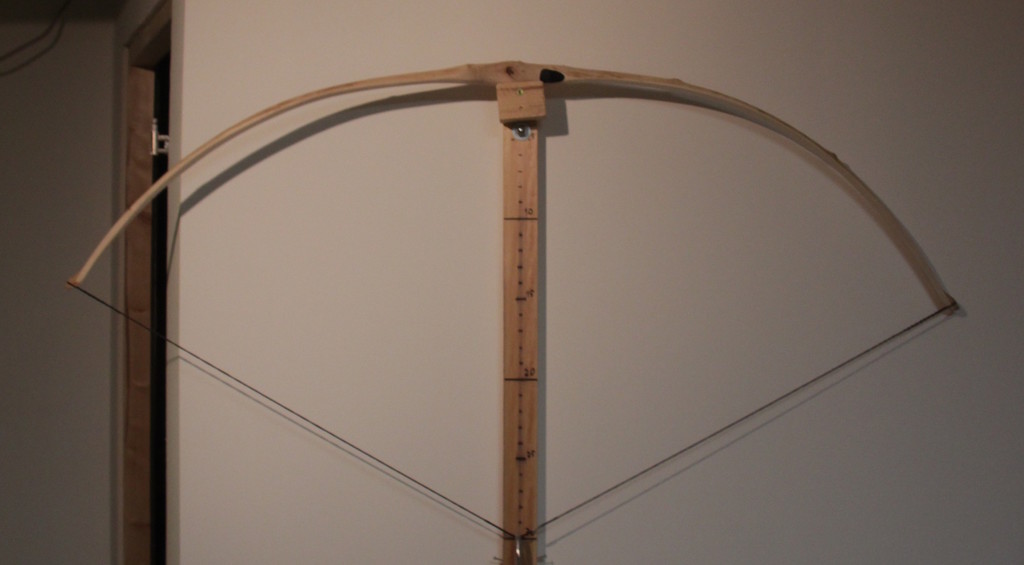 Sehnenabstand kurz hinter den Fades: oben: 15,3, unten 15,7 cm. (Die Sehne hat sich wohl noch etwas gedehnt, ursprünglich waren es mehr...).