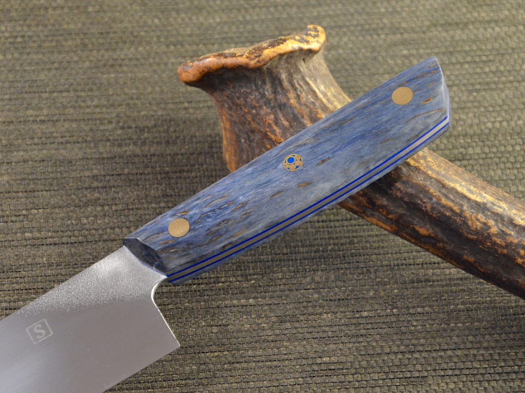 Nachteilig ist wohl das ausbluten der Farbe in das Harz, hier muss man wohl immer die Gefäßgröße an das Muster anpassen um nur soviel Harz als nötig zu verwenden. Ich habe jetzt einen knappen Liter tiefblaues Harz im Regal stehen. Ihr werdet jetzt wohl für einige Zeit blaue Messergriffe von mir sehen.