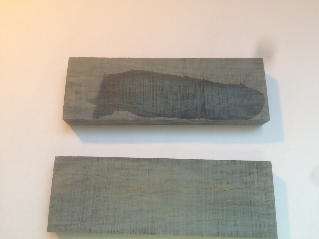 Dies ist das Holz, die Farbe sieht wenn Trocken eher wie ein graublau aus, wenn ich es anfeuchte wird es ein sehr tiefes blau.