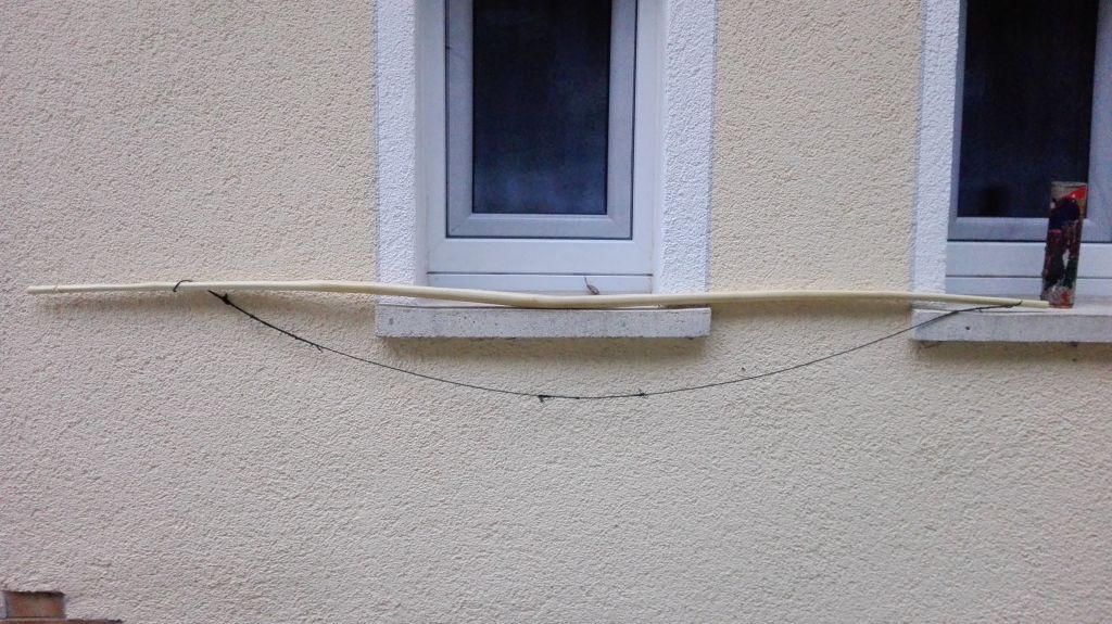 Ich konnte nun endlich anfangen zu tillern. Da der Bogen im Griff stark Reflex gebogen war/ist wurde er mehr zu Möve wie zu einem " Langbogen" und die Belastung in dem Bereich immer mehr gestiegen ist , habe ich mich entschlossen den Griff zu entlasten und ihn etwas kommen zu lassen. Das hatte zur Folge, dass ich an Zuggwiecht verloren habe... mehr als mir lieb war