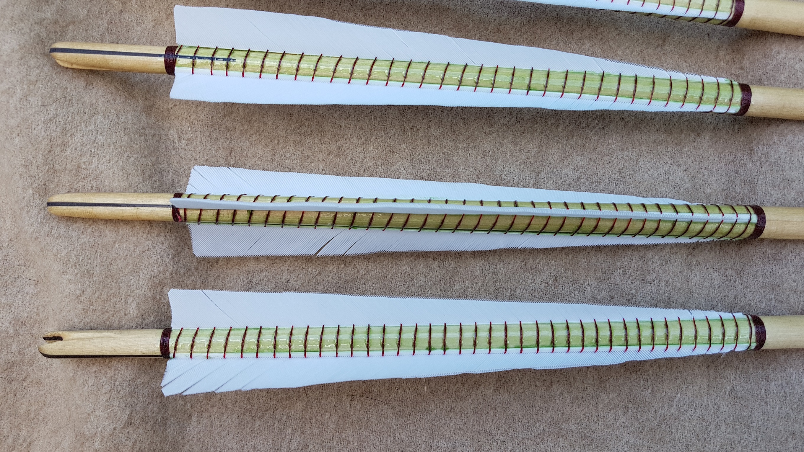 Ja sind sie, die 13x13mm Leisten habe ich im SDBBT Thread gezeigt. Es ist an den Pfeilen alles selbst gemacht, die Federn stammen von Gänsen und mussten auch zugeschnitten werden.