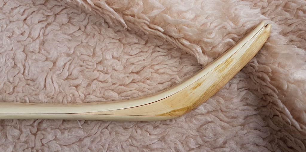 Allerdings nicht so viel, man muss bedenken, dass da ja die Sehnenkerben drin sind und die sind ca. 4-5 mm tief. Und die Sehnenführung funktioniert auf die Art sehr gut.