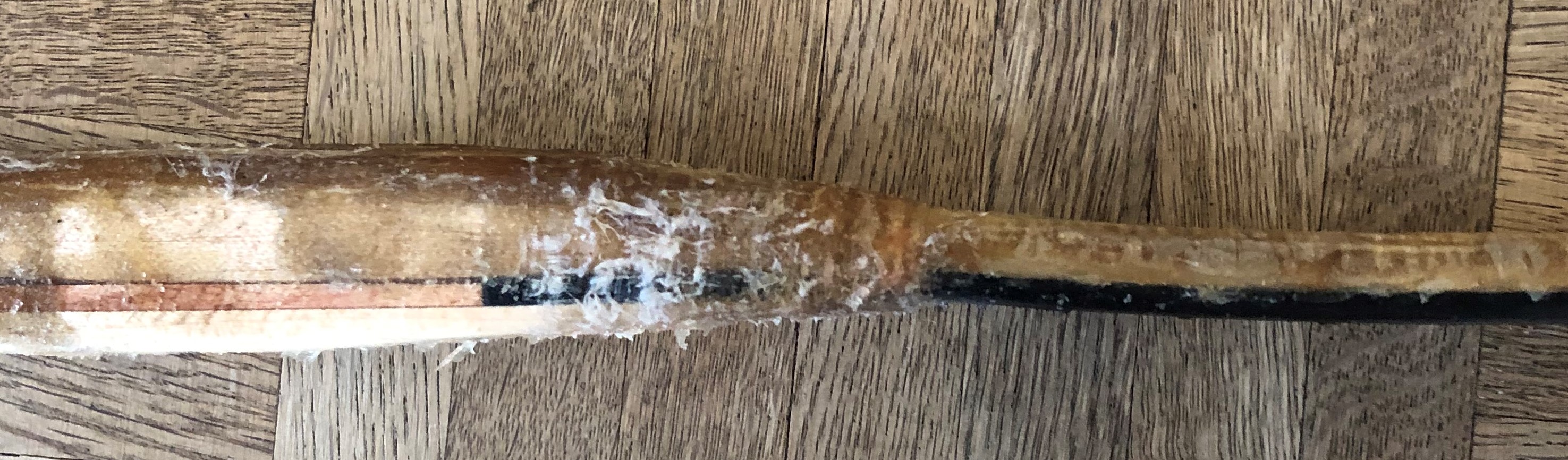 Zum Versteifen könntest du zusätzlich Sehnen im Grifbereich+4cm Fadeout auftragen. Vorne und hinten am Griff zusätzlich mit Sehne umwickeln, damit der Griff sich nicht lösen kann. Könntest du die Dicke von Griff bis zu den Tips in 5cm Schritten aufschreiben.(auf beiden Seiten) Bitte mach mal das Griffleder ab und schaue wie es darunter aussieht, hat der Gerd recht ist nicht mehr viel zu machen...