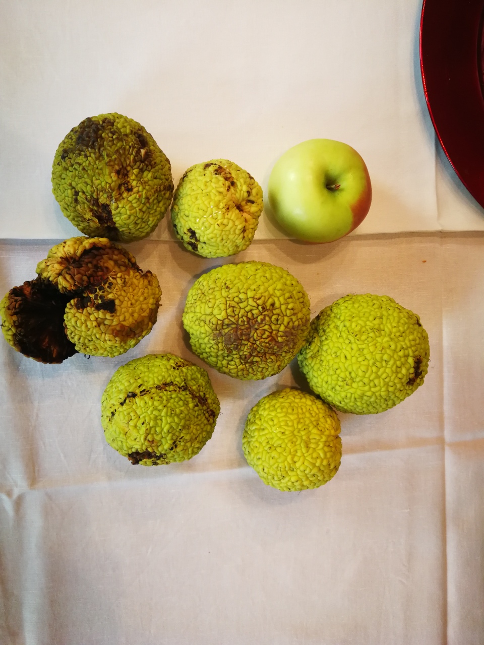 Meine Osagefrucht hatte ich im Dezember von Haitha bekommen, dann vom Fruchtfleisch getrennt und den größten Teil