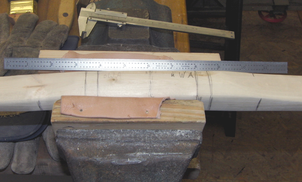 Die Werkzeuge vom vorherigen Beitrag haben sich nicht geändert, allenfalls ein wenig Geduld habe ich noch ins Portfolio mit aufgenommen. Den Rohling habe ich (hatte vergessen, das im letzten Beitrag zu erwähnen) So, 09.02.2020 von um 27,2 g und gestern, Mo, 10.02.2020 um 20,0 g auf 663,75 g reduziert und dabei mit immer noch überlanger Tillersehne (das Monstrum aus dem vorhergehenden Beitrag) mit 40# Kraftaufwand um 7,5" ausgezogen.