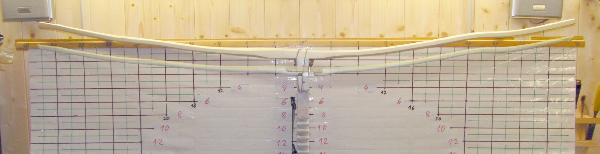 ) habe ich den Rohling wieder ohne Vorspannung an die Tillerwand gehängt und mein planmäßiges Zuggewicht von 40# angelegt.