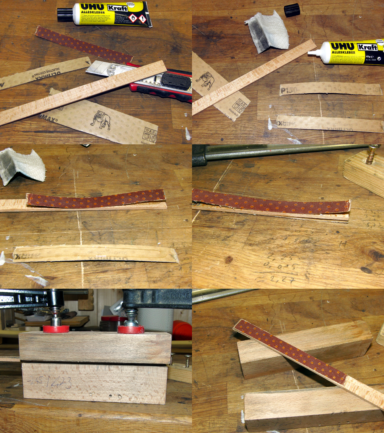 Dann habe ich festgestellt, dass die dünne Ziehklinge, die ich ab dem Zeitpunkt verwenden wollte, abgestumpft ist (Um den gleichen Zustand zu erreichen, muss ich wohl noch einige Bögen gebaut haben, dann aber in Ruhe und Gemütlichkeit...). Also wurde die Ziehklinge nachgezogen.