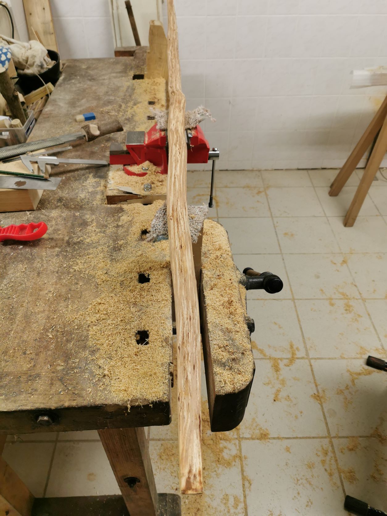 Also habe ich Flipps reingeföhnt und dabei versucht zu begradigen. Das Stück ist noch eingespannt. Morgen schaue ich mir das Resultat an.