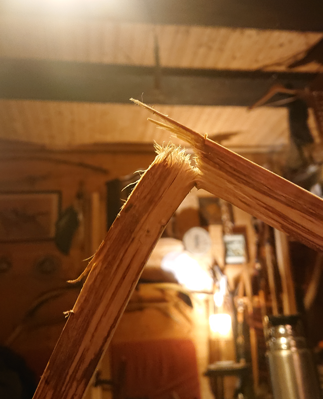 Aber ich vermute dass ich beim ersten Bogen dieser Bauart die Flucht kaum so halten können werde, dass die Sehne sauber mittig aufschlägt...