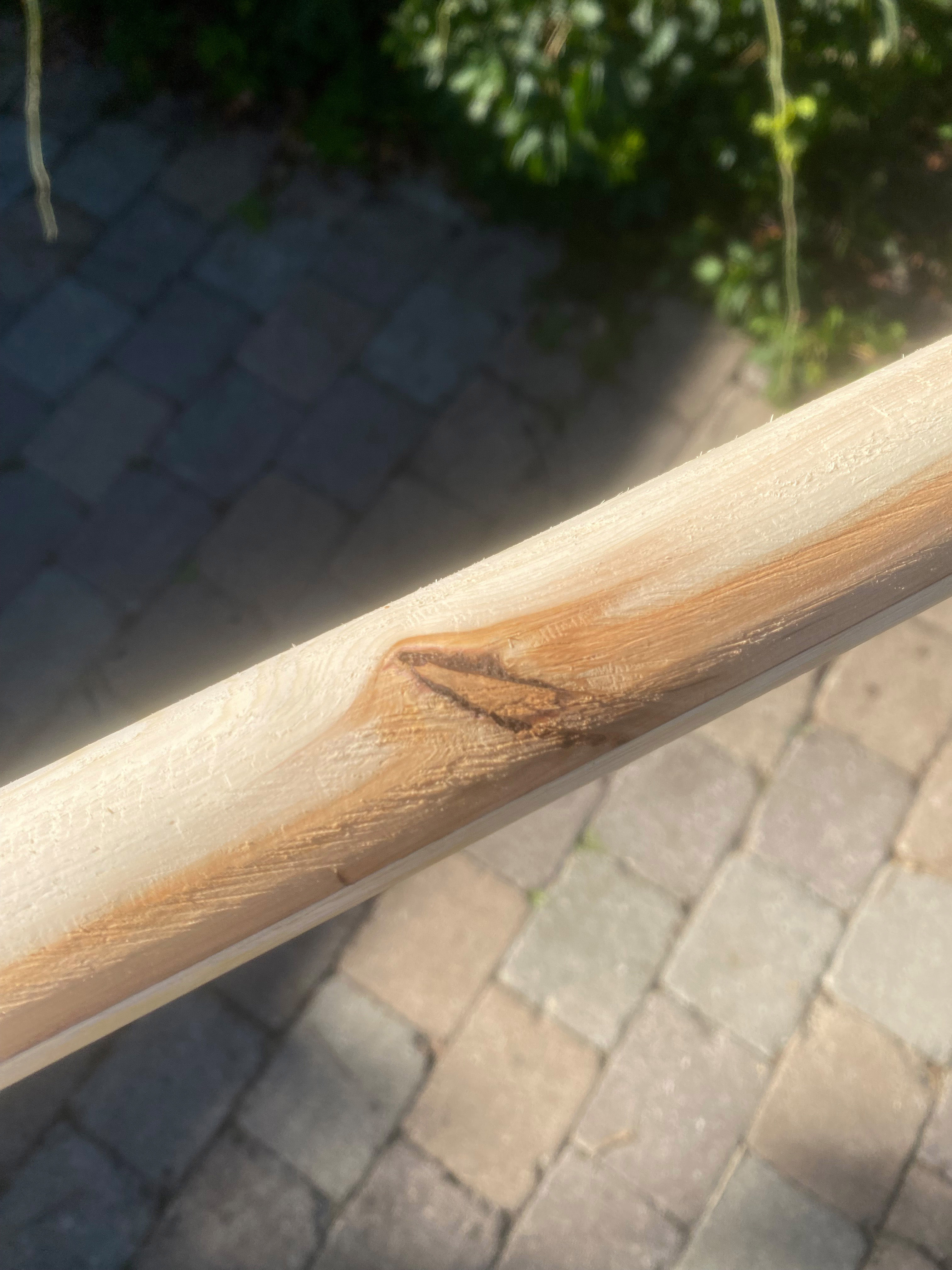 Weil da Splint auf den Bildern zu sehen ist: Wie gesagt - erster Versuch, kein besonders gutes Holz, nicht weiter schlimm, wenn er bricht. Die nächsten beiden baue ich komplett ohne Splint, der passende Stamm dafür ist vorhanden.