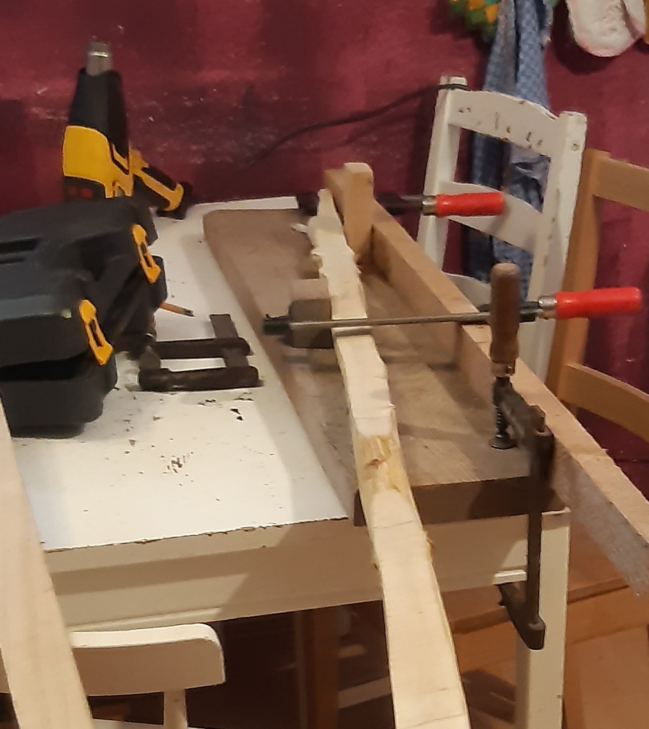 Versucht Holler2 mit der Hlp weit genug zu biegen ist gescheitert. Also den Aufbau zum biegen nochmal verändert und doch noch mal mit Dampf. Bei den Enden geht es mit Abstand zwischen Alufolie und Holz. Allerdings wohl etwas viel Biegung gewollt.